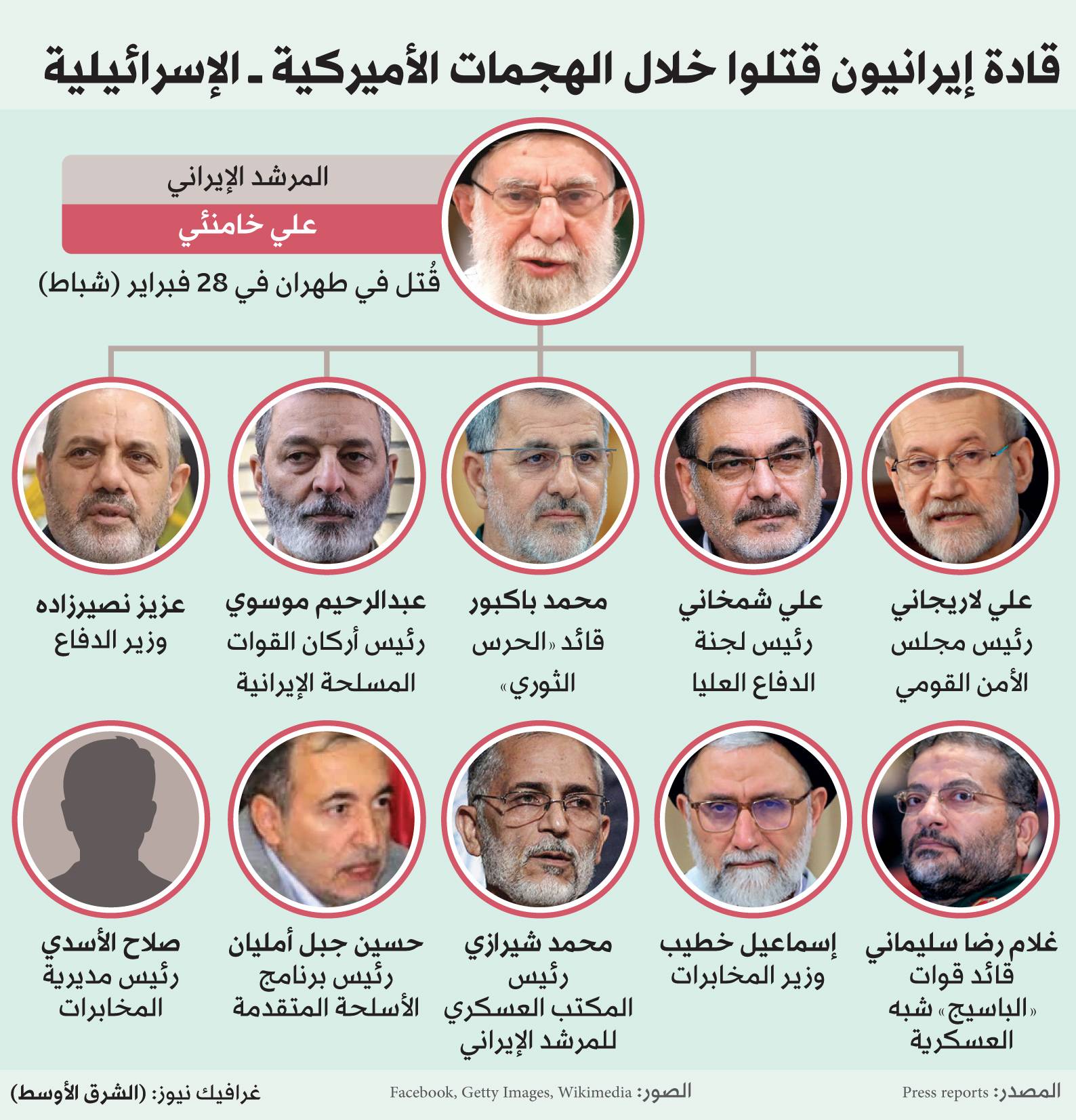 رۆژی سێشەممە ئیسرائیل كوژرانی هەریەك لە عەلی لاریجانی سەرۆكی ئەنجومەنی باڵای ئاسایشی نەتەوەیی ئێران، و غوڵام رەزا سولەیمانی فەرماندەی هێزی بەسیجی ئێرانی لە دوو هێرشدا لە تاران ڕاگەیاند، هەمان رۆژ ئێران كوژرانی هەردوو بەرپرسە باڵاكەی پشتڕاستكردەوە.